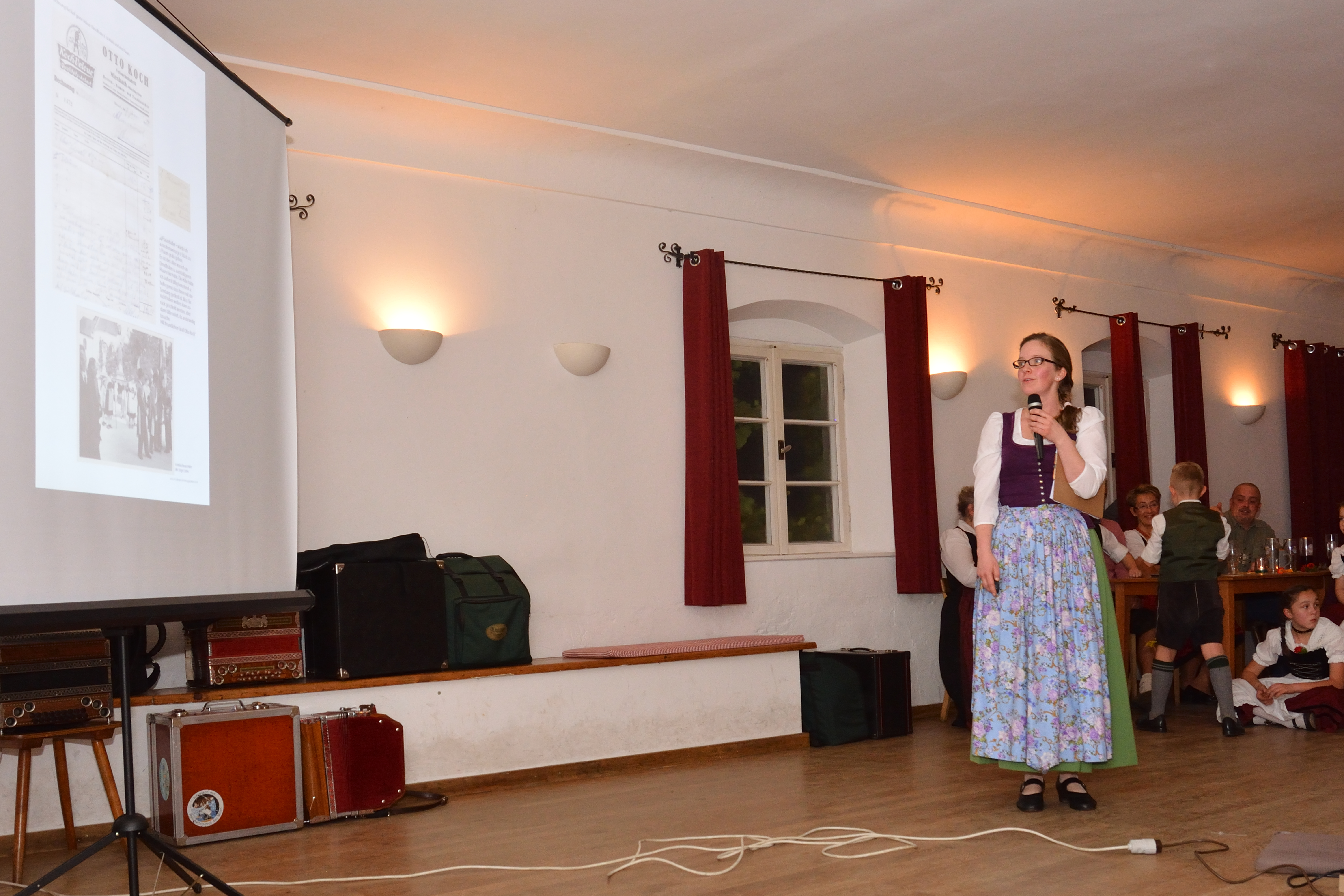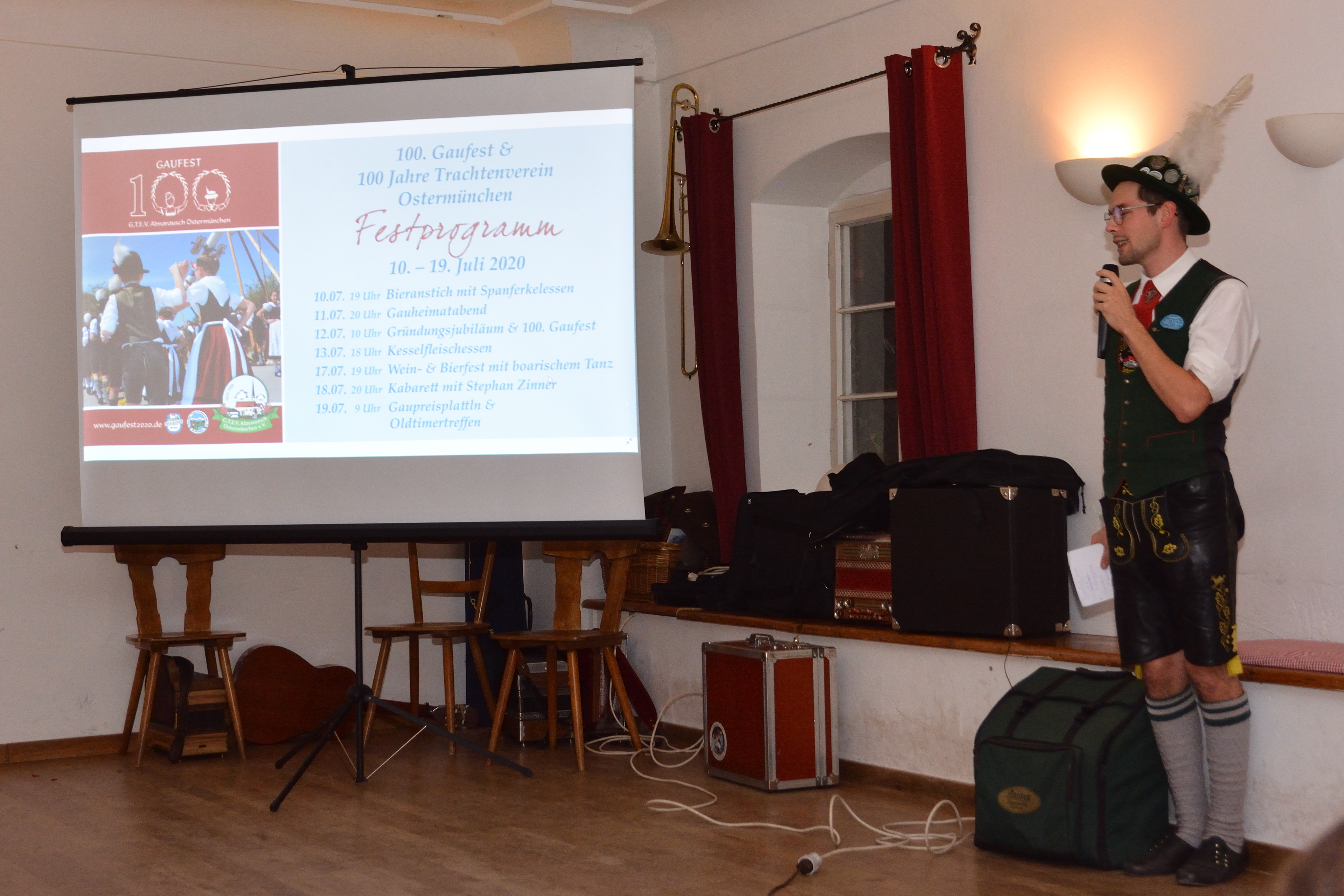 In der Mitte des Abendprogramms erzählte Johannes Kiemer, einer der beiden Festleiter unseres Gaufestes nächstes Jahr, wichtige Informationen und erläuterte das Festprogramm genauer. Alle hörten ihm aufmerksam zu und es kam schon Vorfreude für das große Fest auf.